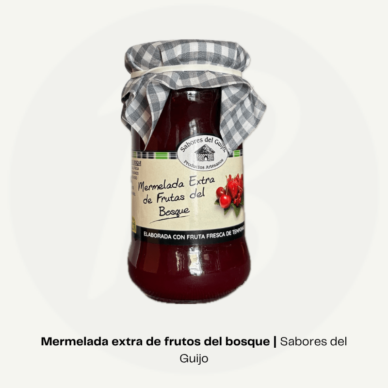 Mermelada artesanal con 65% de frutas del bosque: cereza, frambuesa, fresa y grosella. Textura suave, sabor intenso y sin conservantes. Ideal para tostadas, yogures y repostería gourmet.