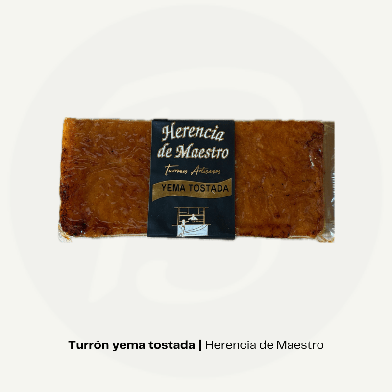 Turrón de yema tostada de Dos Hermanos: dulce clásico con sabor profundo a huevo y azúcar caramelizado. Tradición navideña en cada bocado, hecho con experiencia familiar en su obrador de Castuera.
