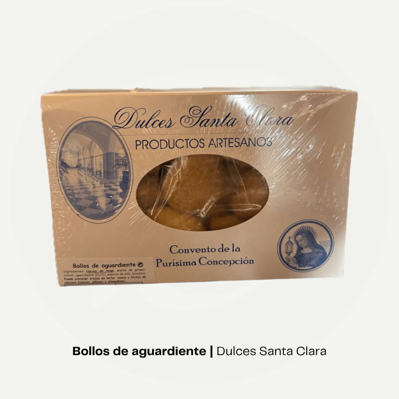 Bollos artesanales elaborados en el convento de las Hermanas Clarisas, aromatizados con aguardiente. Crujientes y esponjosos, un dulce tradicional con carácter, perfecto para acompañar el café o sorprender en una ocasión especial.